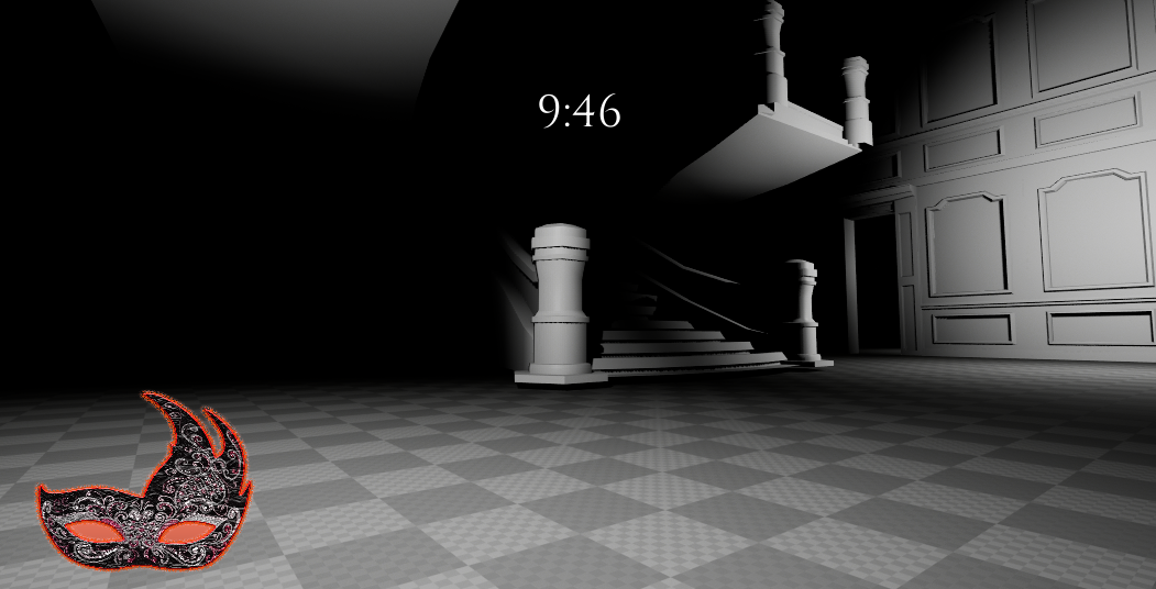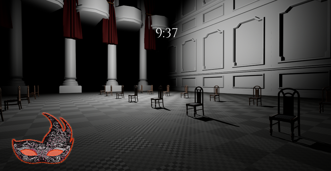 The player awakens inside a decaying masquerade ballroom trapped in an almost distorted world. The environment has some sealed corridors that you can only access by wearing a mask which you can equip by pressing Right Click. Accessing those corridors allows the player to gain access to more pathways and rooms that are otherwise inaccessible and invisible. The player must explore, interpret visual cues and strategically choose when to wear the mask in order to escape before the time expires.